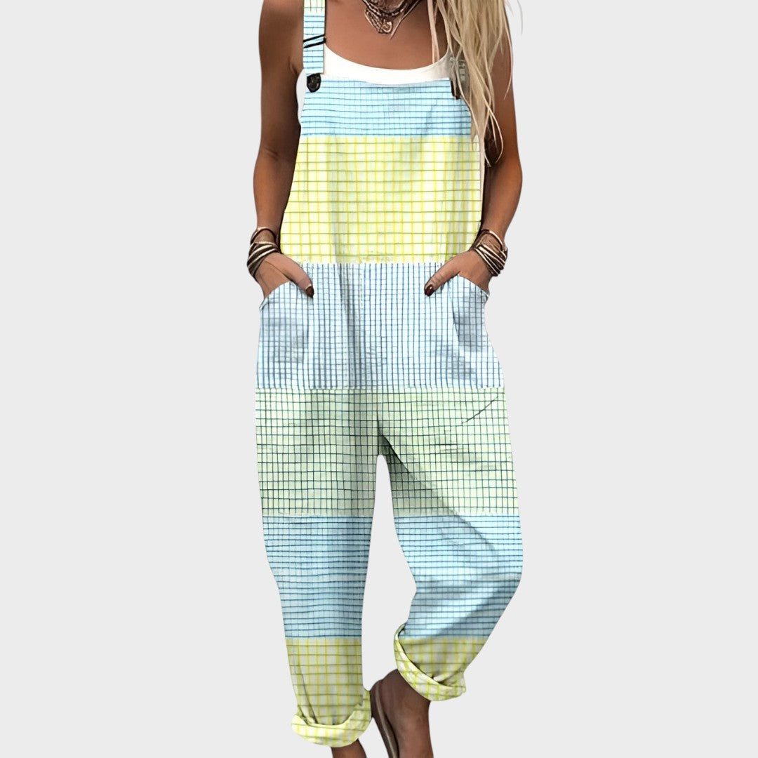 Този летен гащеризон съчетава комфорт и уникален дизайн в парче облекло, което ще обожавате да носите всеки ден. С широк силует, практични джобове и игриви детайли, той е перфектен за разходки, излети или релаксиращи моменти у дома.