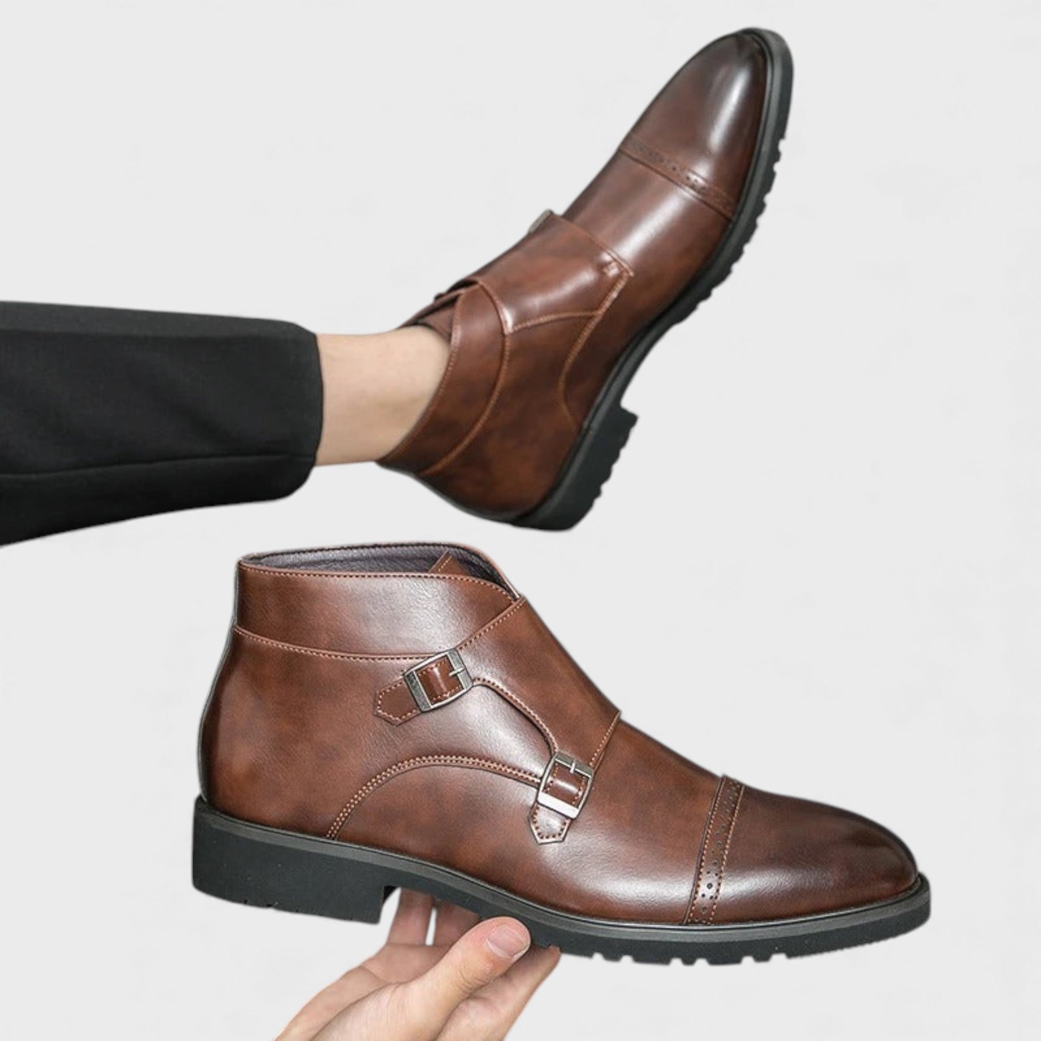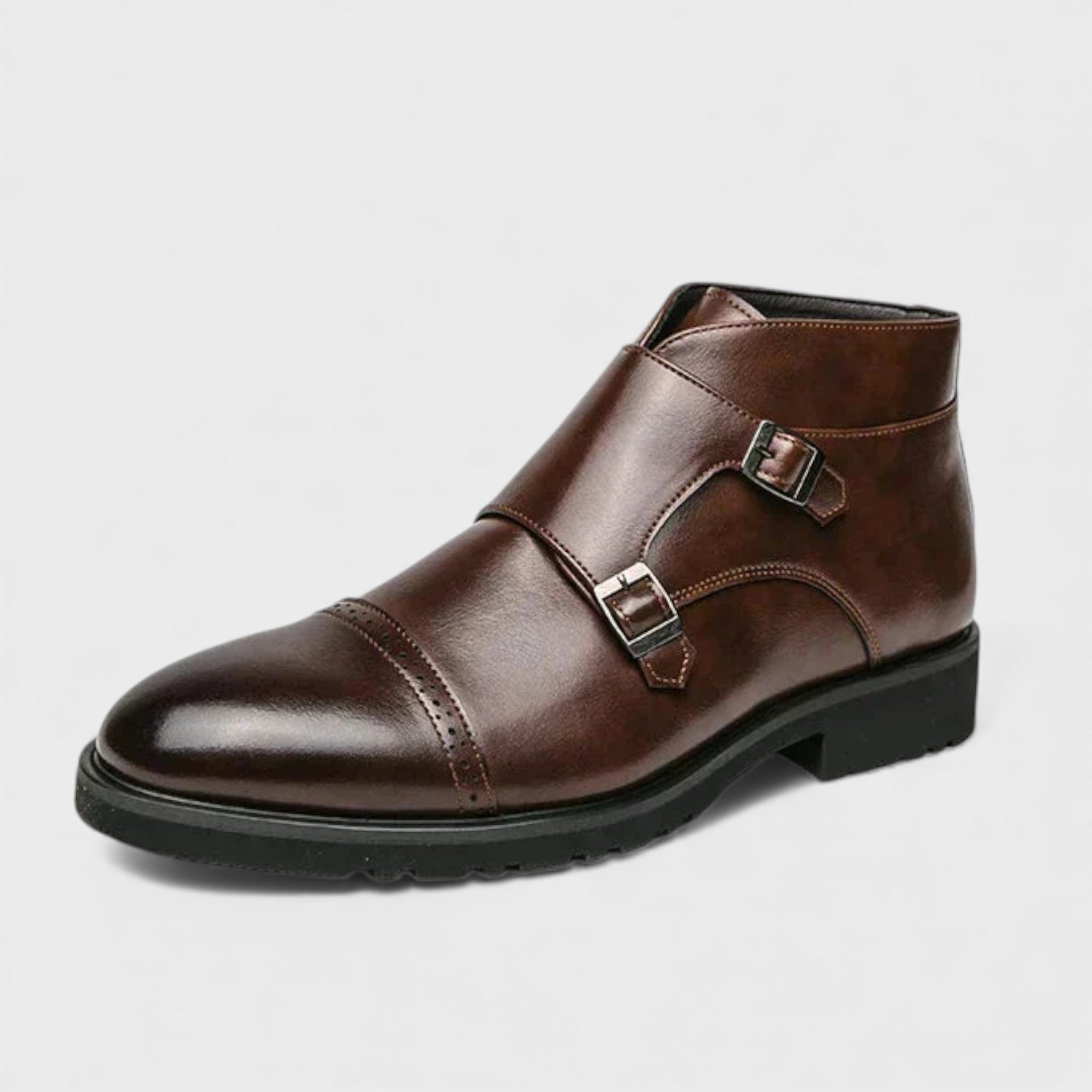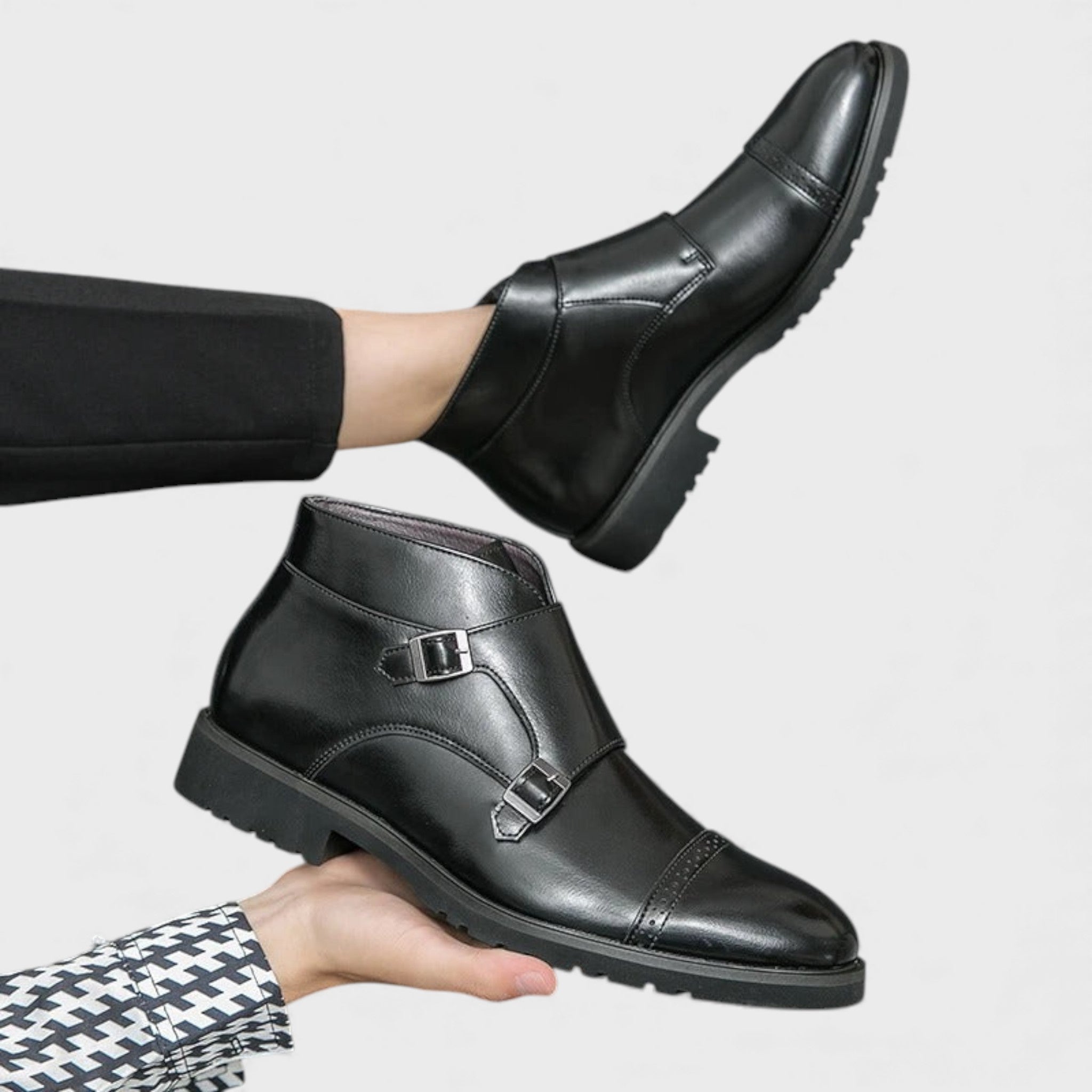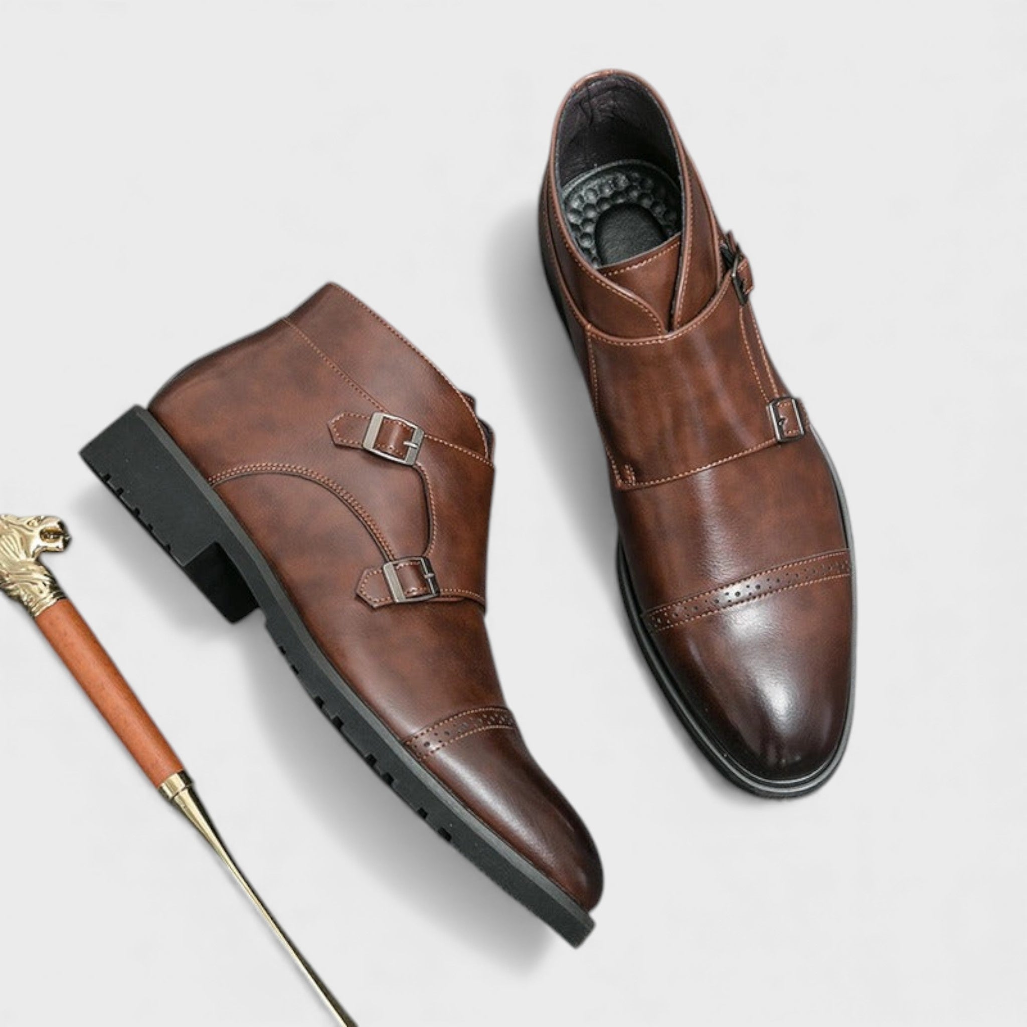 Кожените ботуши Darell с две катарами са въплъщение на изтънчената елегантност. Изработени от висококачествена естествена кожа, те предлагат ненадминато ниво на стил и класа. Тези ботуши съчетават перфектно традиционното майсторство с модерния лукс, което прави идеален избор за изискания мъж.