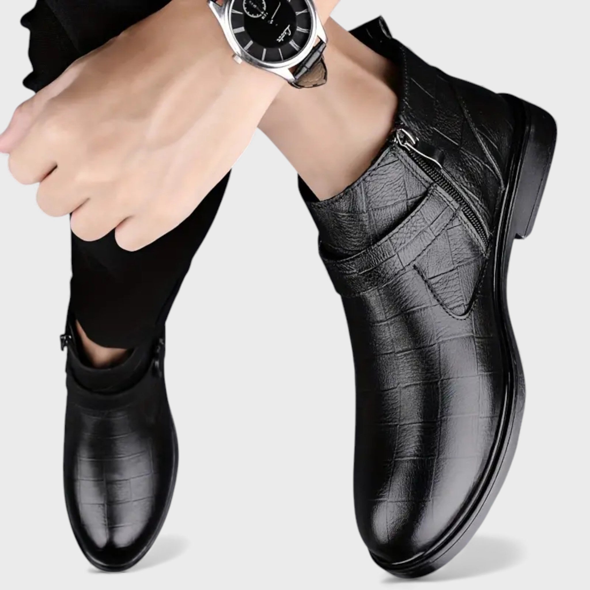 Тези ботуши са изработени от висококачествена естествена кожа и са създадени да издържат дълго време. Предлага класически дизайн, който съчетава комфорт и издръжливост. Меката стелка гарантира оптимален комфорт дори след дълги часове носене. В допълнение, универсалният им дизайн се адаптира перфектно към всички стилове – от елегантен костюм до по-ежедневен тоалет.