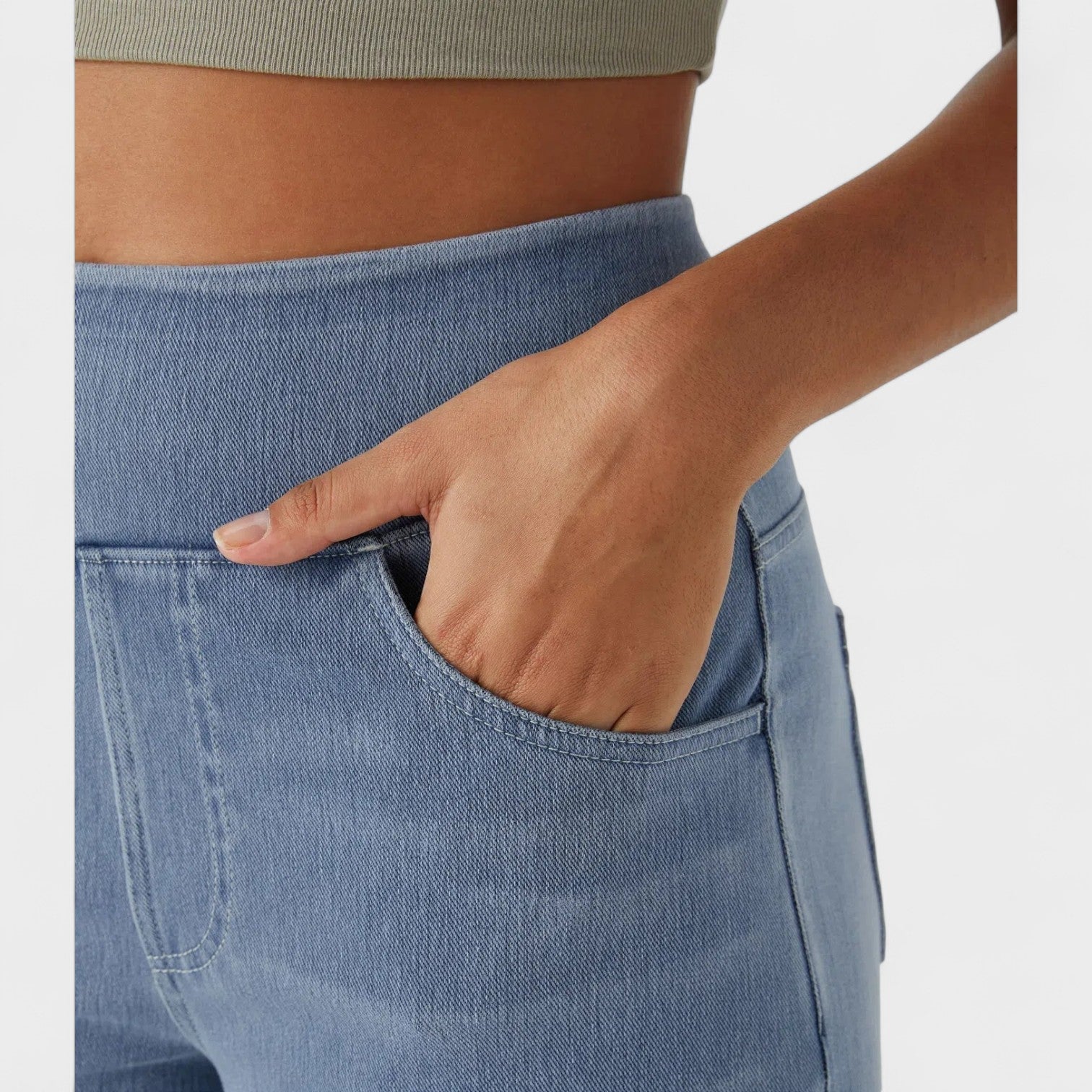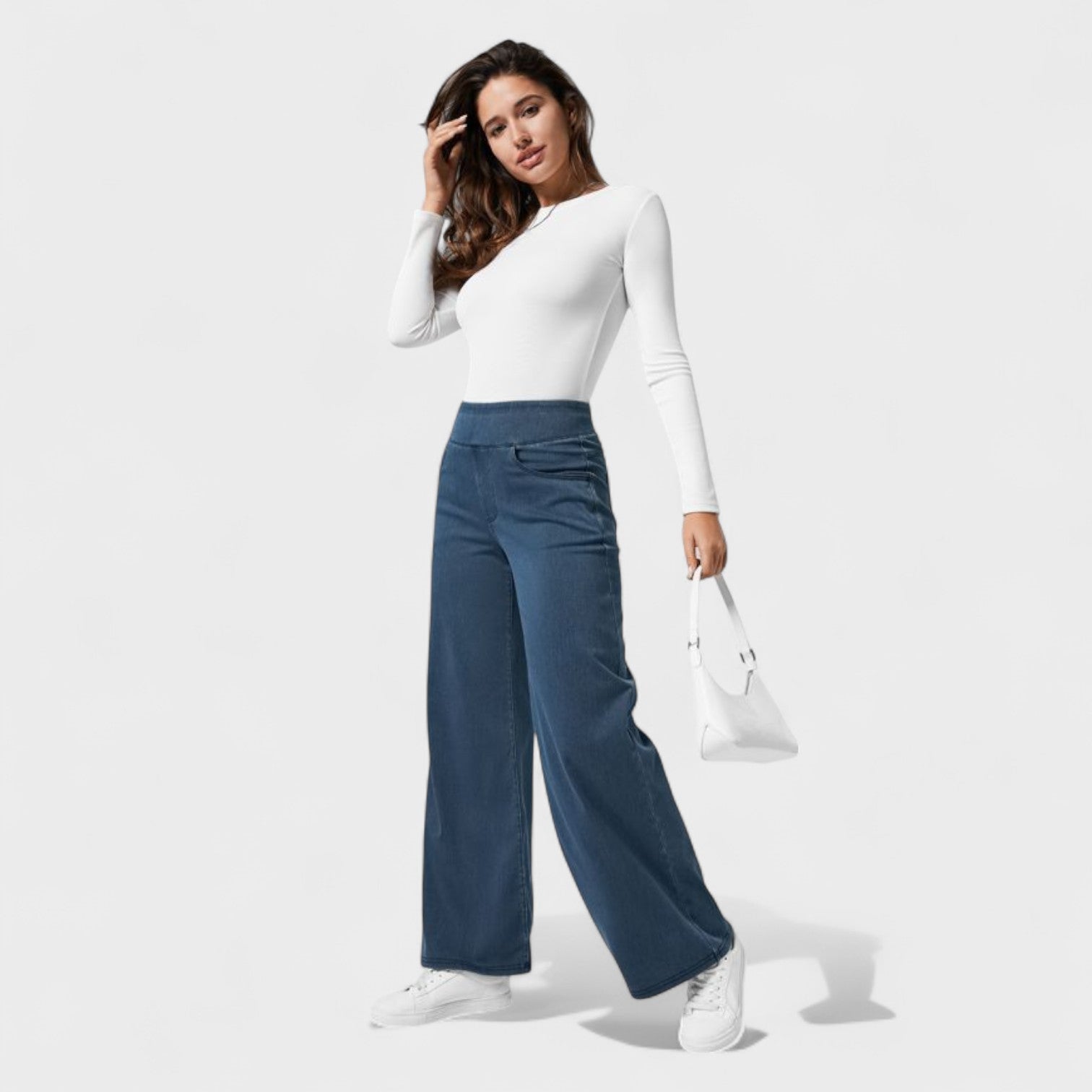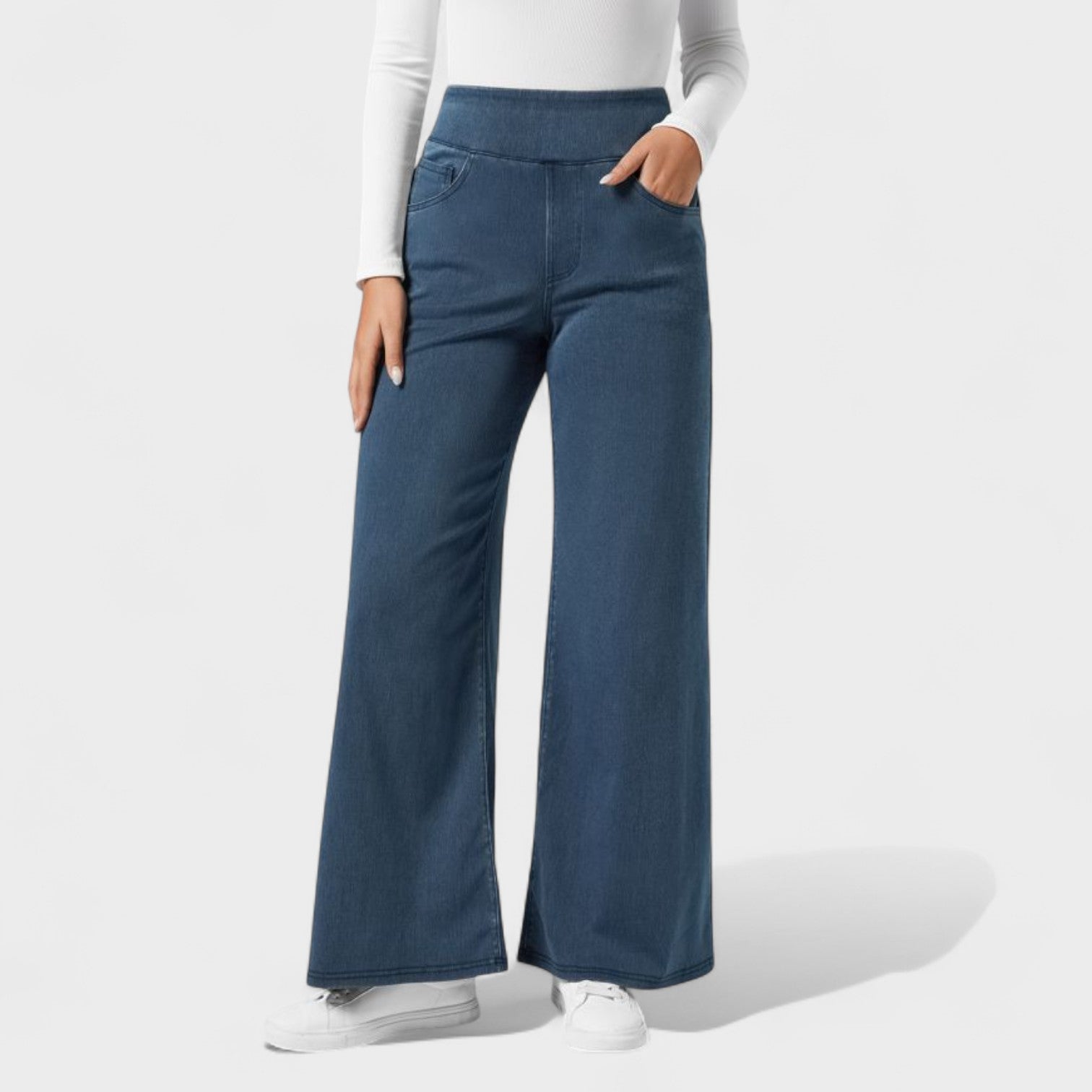 Открийте перфектния баланс между удобство и елегантност с дънковите панталони Клара. Дизайнът с широки крачоли удължава силуета, без да жертва удобството, идеални за активни жени, които искат да изглеждат добре всеки ден.