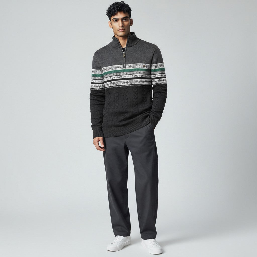 Димитър – Мъжки Пуловер с Цип и Комбинирана Плетка