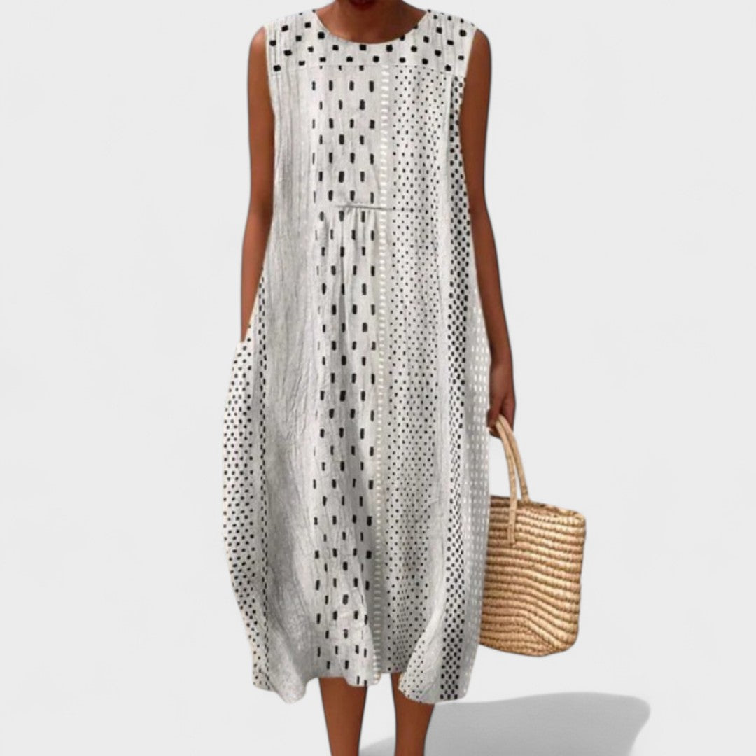 Тази лека и въздушна рокля перфектно съчетава стил и практичност, давайки ви свобода на движение и изискан вид за всички поводи. Нейният свободен крой и цветен десен са идеален избор за плаж, разходка из града или летни срещи.