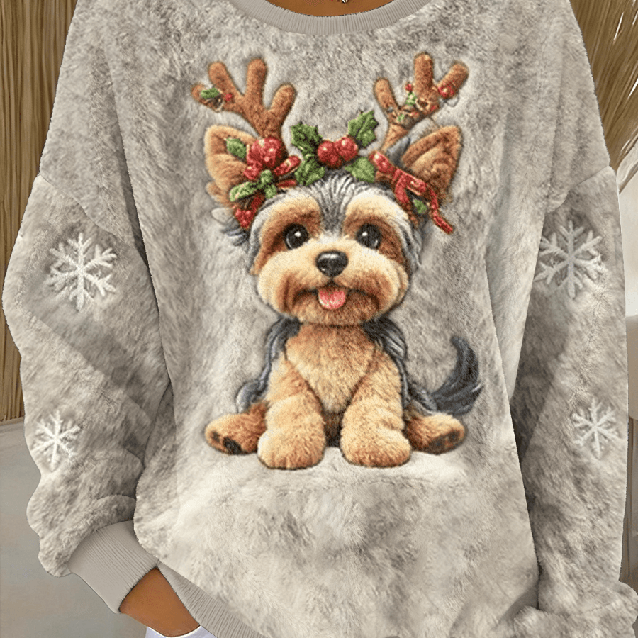Дамски сладък коледен кучешки арт печат свободен фланелов суитчър