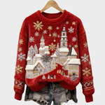 • Завладяващ и Триизмерен Дизайн: Мотивът на заснежено село върху блузата създава изискан и уникален 3D визуален ефект, което кара артикула веднага да се открои.