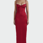 Елегантна сатенена рокля, която излъчва изисканост и вечна изтънченост. Нейната мека материя хармонично обвива силуета, докато минималистичната линия е идеална за всекикъв повод. Перфектна за вечерни излизания, сватби или елегантни появи с дискретен лукс.