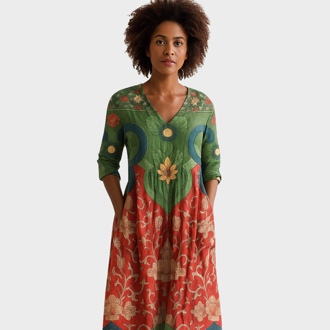 Lucija™ – Елегантна миди рокля с V-образно деколте