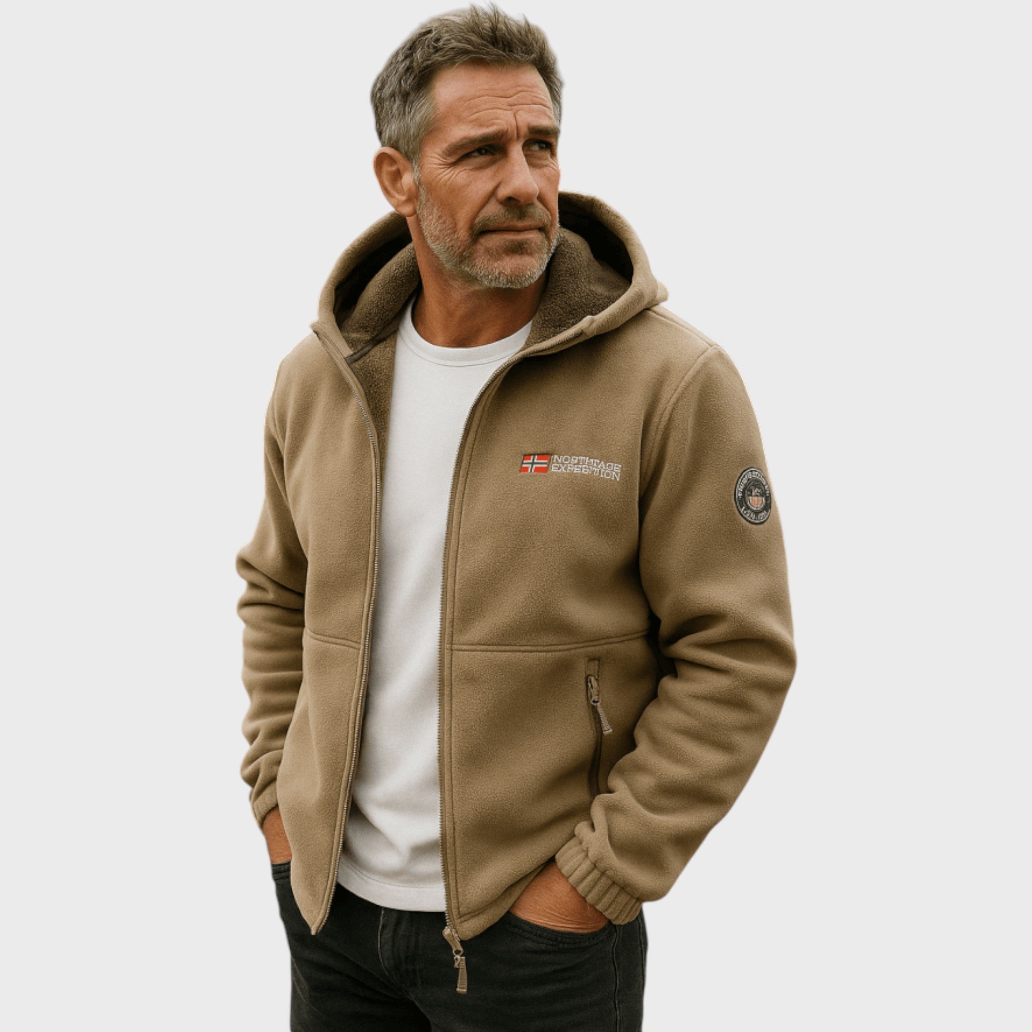 Този мъжки полярен суичър съчетава уютна мекота с надеждна защита срещу променящото се време. Перфектен избор за ежедневни разходки, екскурзии или просто за града, той предлага скандинавски дизайн, който лесно се комбинира с всяко облекло.