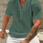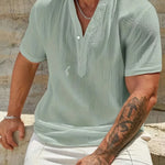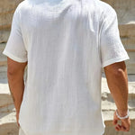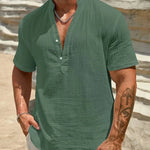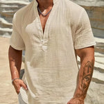 Изработена от мек памучен микс с леко намачкана текстура, тази риза осигурява отлична вентилация. Тя ви държи хладни и удобни, дори в най-горещите дни на лятото.