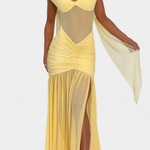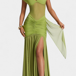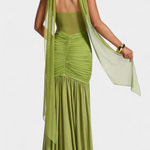 Елегантна съблазнителност в силует, който тече с намерение. Роклята Милица се отличава със своята ултра мека текстура от мляко коприна и деликатен блясък, който милва всяка извивка. Нейното дълбоко V деколте и ниският гръб създават удължена линия, докато стратегически набръчканите детайли деликатно оформят. Високият разрез добавя щрих на изтънчена смелост.