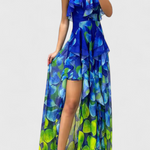 Скулптурна любов с романтичен допир. Роклята Зринка комбинира меки слоеве волани със страничен отвор и деликатен градиент на цвета, създавайки дизайн, който елегантно тече и се откроява без усилие. Нейната структура без ръкави и кройка до глезените е идеален избор за летни събития, изпълнени със стил.