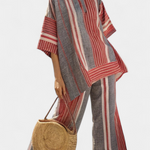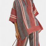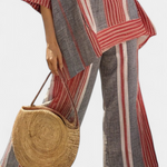 Средиземноморски стил с отпуснат дух. Комбинезон Daisy съчетава ивички в червени коралови тонове със сиви тонове в широка и течаща силуета, която напомня за лято и автентичност.