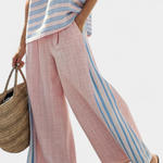 Комплект от ленен бамбук Дейзи Средиземноморски в нежно розов цвят с елегантни сини ивици
