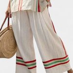 Средиземноморски комплект Дейзи от бамбуков лен с елегантни червени и зелени ивици