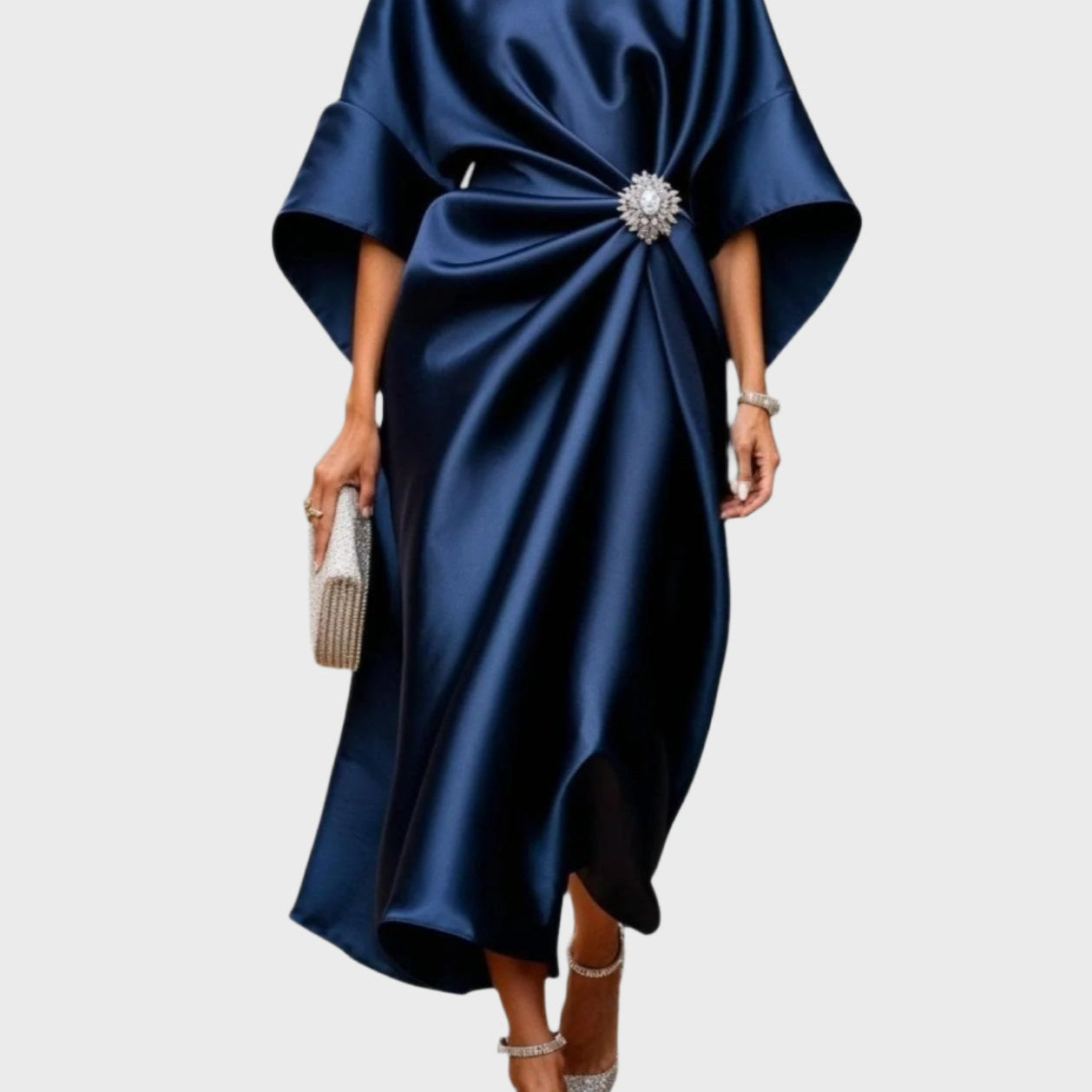 Сикато Минималистична Рокля с Колан и Широки Ръкави