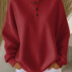Останете топли дори когато температурата паднат до 5 градуса с големия луксозен дамски пуловер – изработен от плътна, двупластова вафлена материя, която осигурява невероятно меко и топло усещане. Вътрешната страна е изключително удобна и наподобява полар, като осигурява максимален комфорт в хладните дни.
