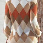 Мека и елегантна плетка в топли нюанси на бежово и ръждиво.