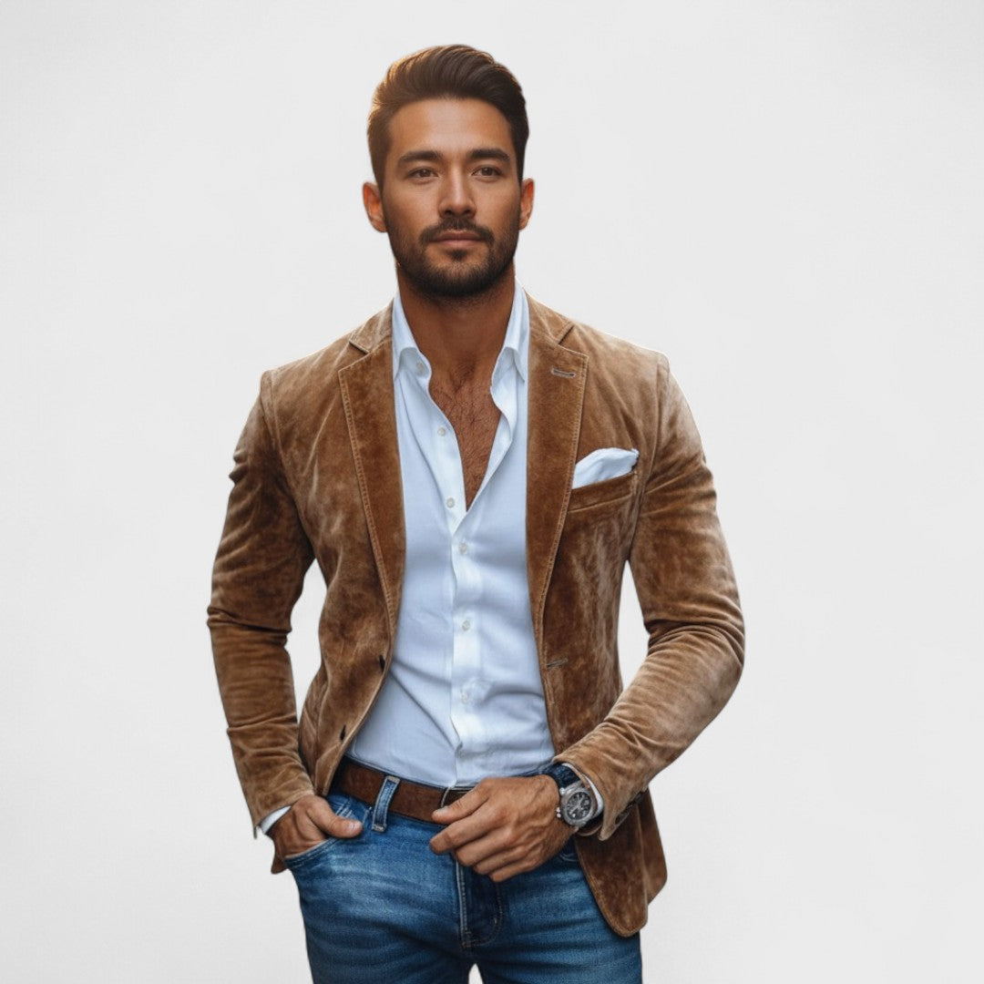 Това мъжко сако съчетава съвременна визия и класическа изтънченост. Изработено е от висококачествен материал, който осигурява комфорт и перфектна форма. Идеално за официални събития, бизнес срещи или стилни ежедневни визии – това ще подчертае вашата индивидуалност и вкус.