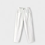 Изработени от лен, тези панталони съчетават свежестта на естествените материали с прост и елегантен дизайн. Правият и леко летящ крой позволява удобно носене, докато еластичният колан осигурява перфектно прилягане. Основен елемент за по-топли дни, перфектни за неформални и изискани комбинации едновременно.