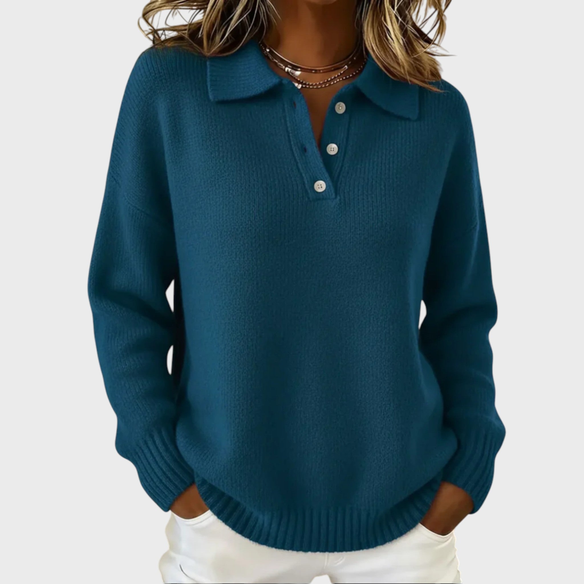 Поло пуловерът Виктория е повече от просто дреха – той е усещане. Създаден, за да Ви обгърне в несравнима мекота, този пуловер съчетава уюта на луксозното плетиво с вечната поло кройка. Той е ключов елемент във Вашата визия, излъчващ лекарството, увереност и непринуден стил.