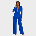Този изискан комплект сако–панталон е идеален избор за жени, които искат да оставят силно впечатление. Перфектният крой подчертава фигурата, докато класическото сако и елегантните панталони създават вид, който излъчва изтънченост и модерен стил. Подходящ е за бизнес срещи, оценени поводи или вечерни излизания, когато искате да блеснете.